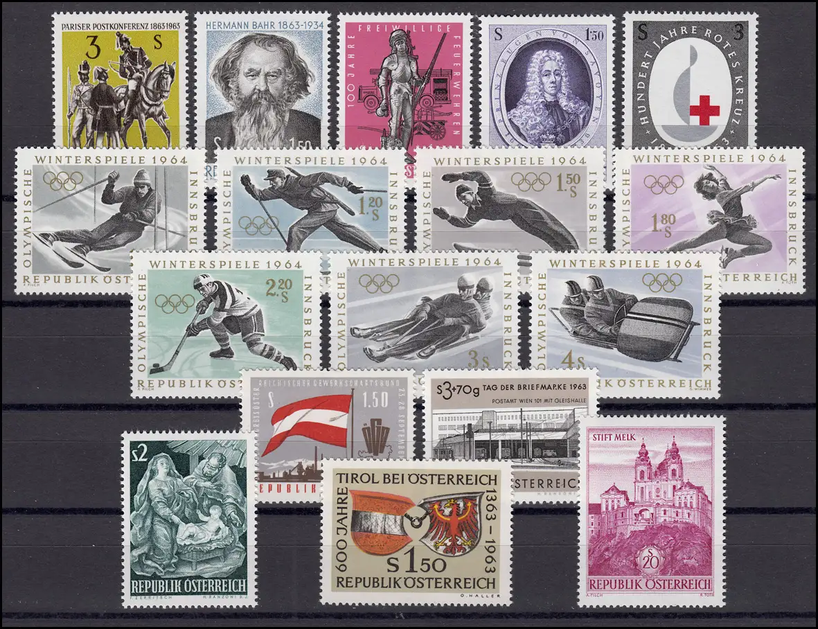 1128-1144 Autriche-Janvier 1963 complet, frais de port