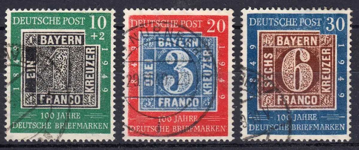 113-115 Briefmarken 1949, Satz rundgestempelt, Höchstwerte geprüft Schlegel BPP