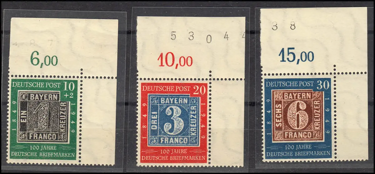 113-115 Briefmarken 1949, kpl. Satz Eckrand oben rechts ungefaltet postfrisch **