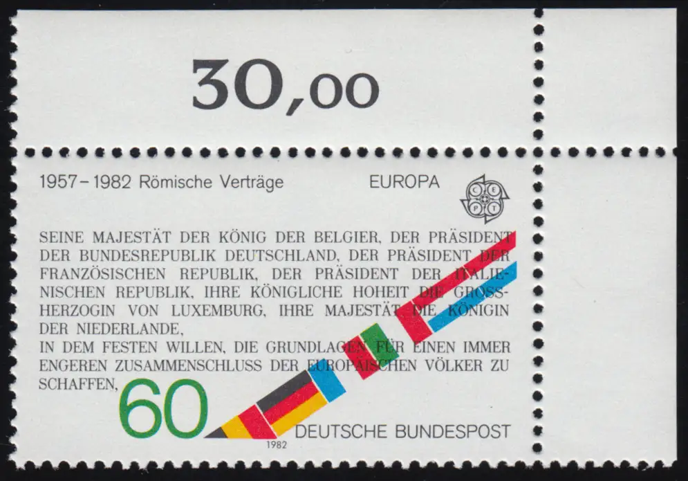 1131 Europe Traités de Rome 60 Pf ** Coin o.r.