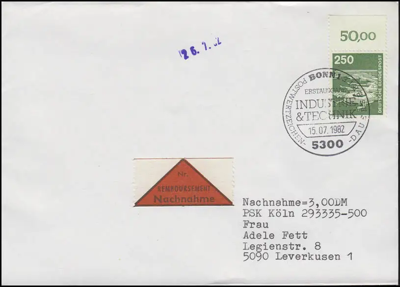 1137 IuT Aéroport de Francfort/Main, Oberrandbeit, EF NN-FDC ESSt Bonn 15.7.1982