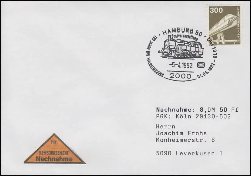 1138 Magnetbahn & Eisenbildungswerk Hamburg, NN-Brief Hamburg SSt 5.4.2992