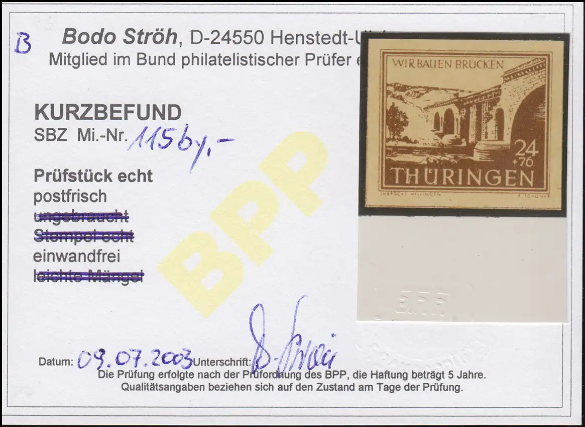 115by ponts 24 Pf. couleur rare, post-frais **, résultat Ströh BPP