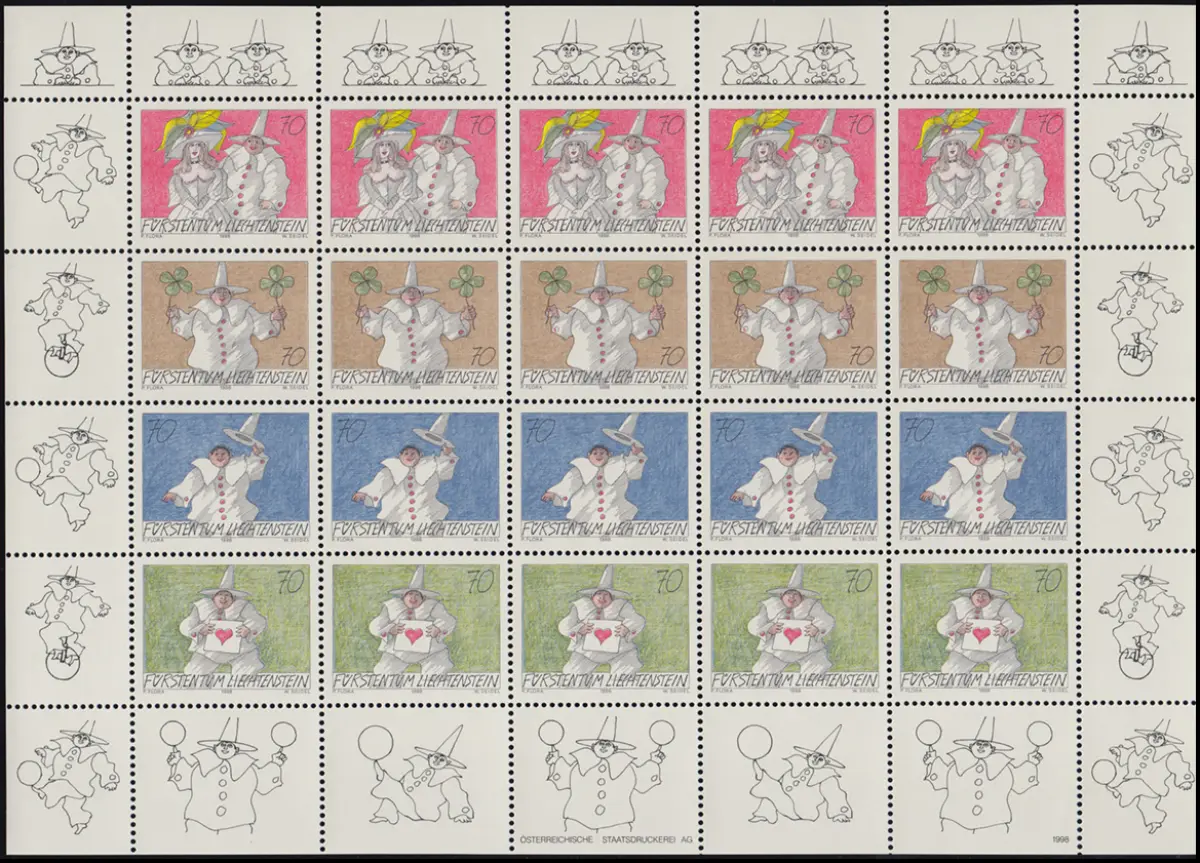 Petite feuille de 20 timbres: 5 fois 1173-1176 Clown Numéro de catalogue: 11731176, examen: original Numéro d'article: 81100117301100