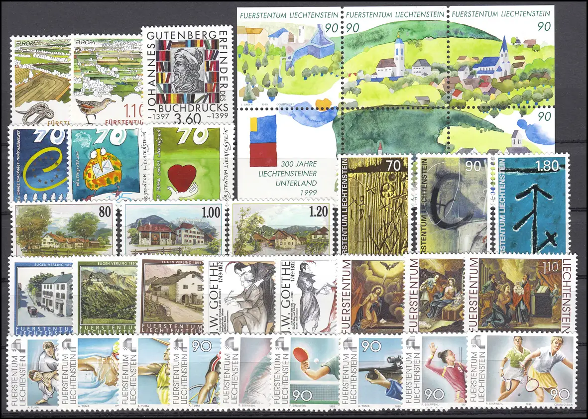 1190-1223 Liechtenstein année 1999 complète, frais de port