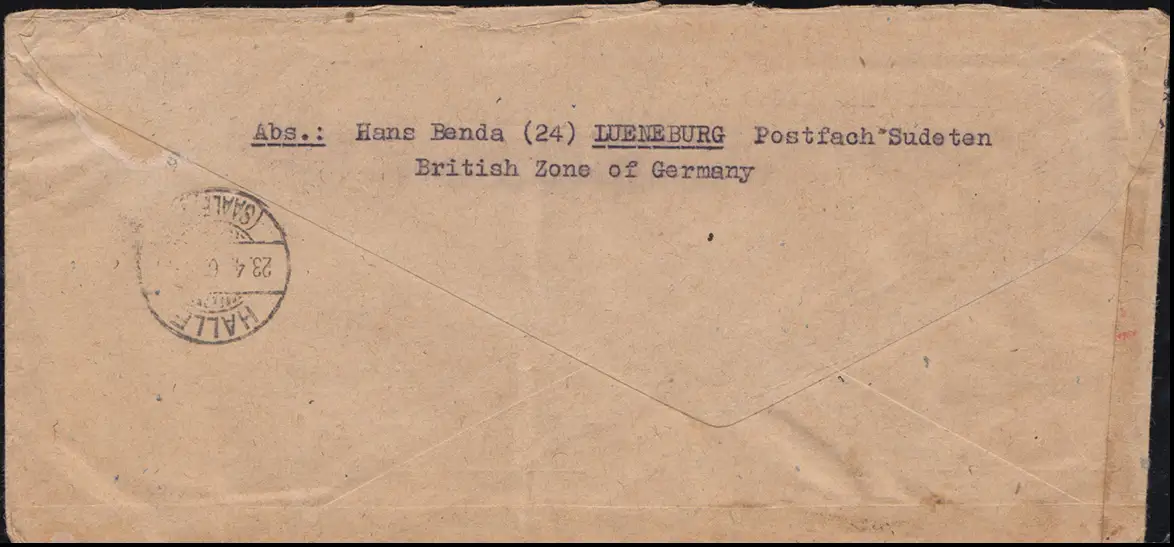 12 AM-Post 5 Pf. Engl. Impression + ZF amer. / dt. Imprimer, Lettre R LÜNEBURG 15.4.1946