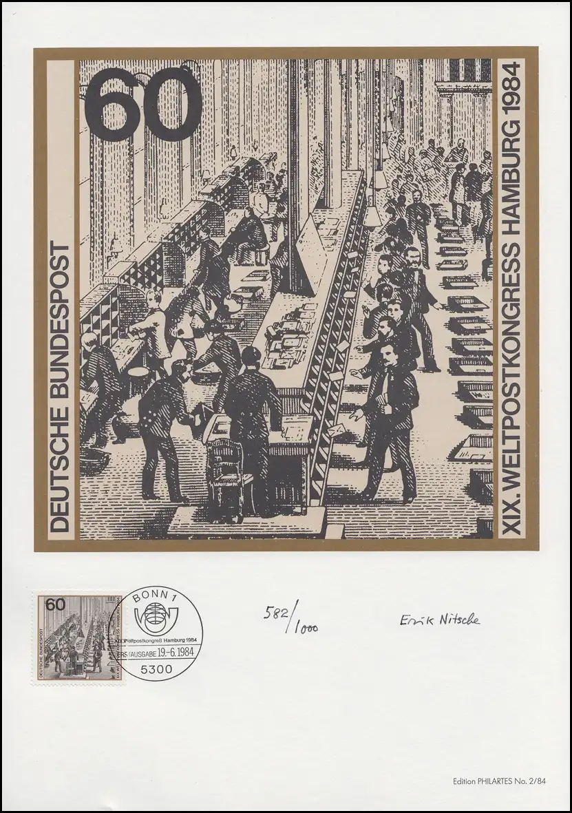 1215 Congrès mondial des posts UPU Hambourg 1984, projet: Nitsche, signé original