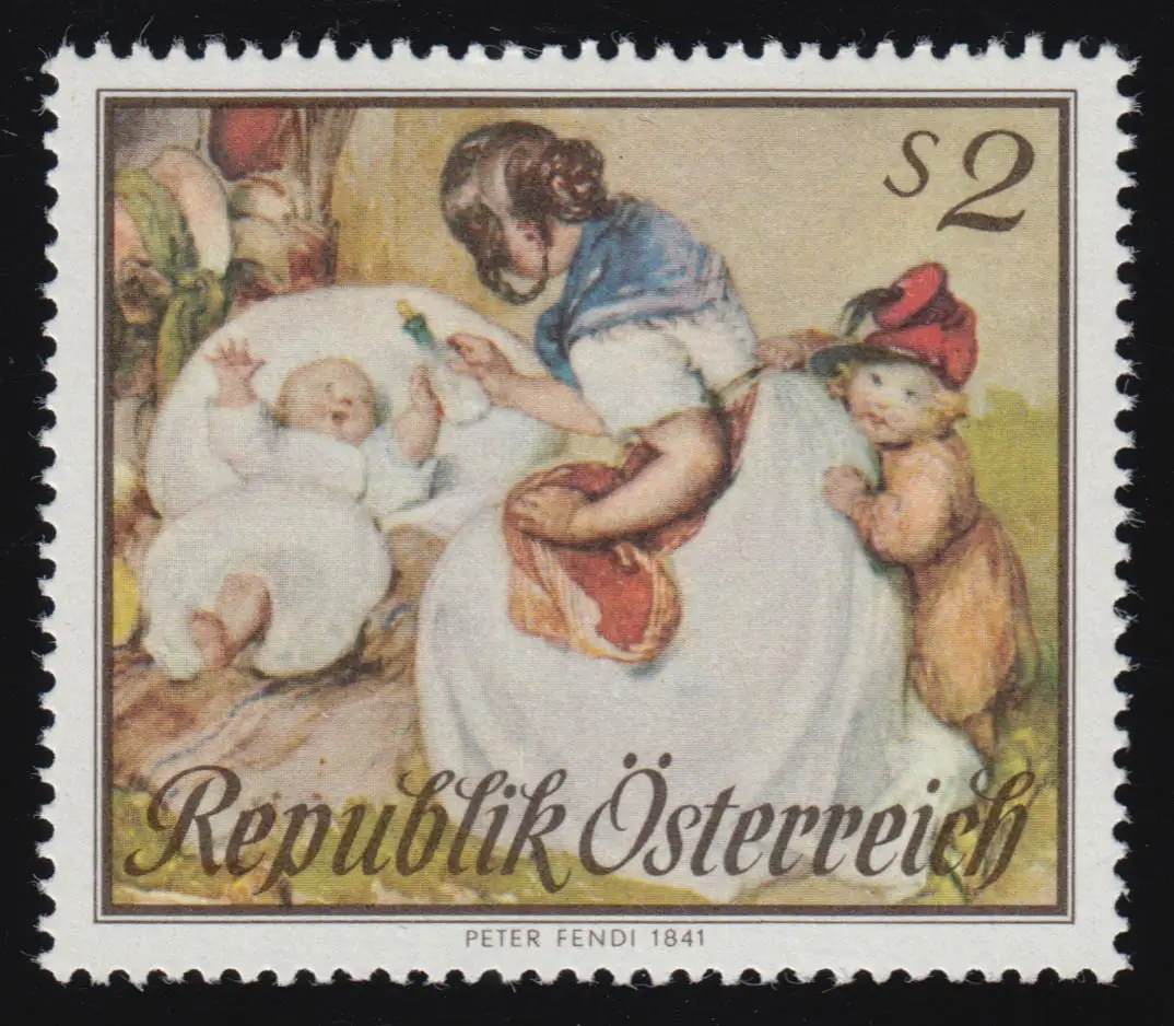 1237 Fête des mères, Mère avec enfants, Aquarelle de Peter Fendl, 2 S Postfreich **