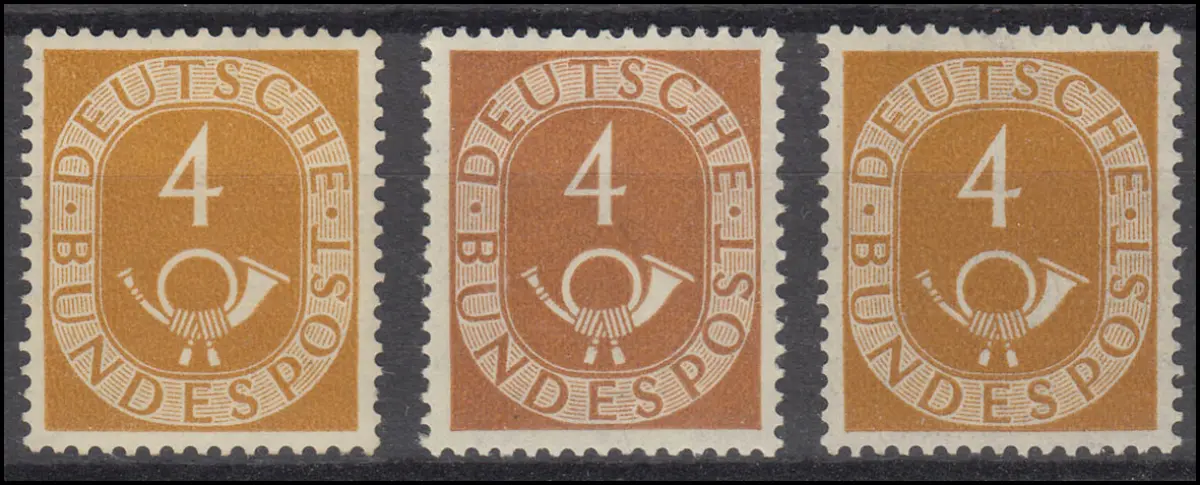 124 Posthorn 4 Pf. Farbtönungen - Dreierset postfrisch **