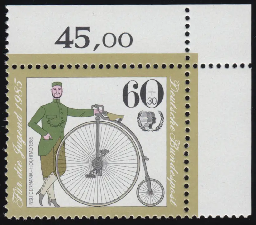 1243 Jeunes Bicyclettes historiques 60+30 Pf ** Coin o.r.