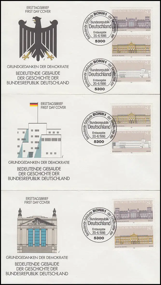 1287-1289 Démocratie Bâtiment: 3 ZD de bloc 20 sur 3 Bijoux-FDC's ESSt Bonn