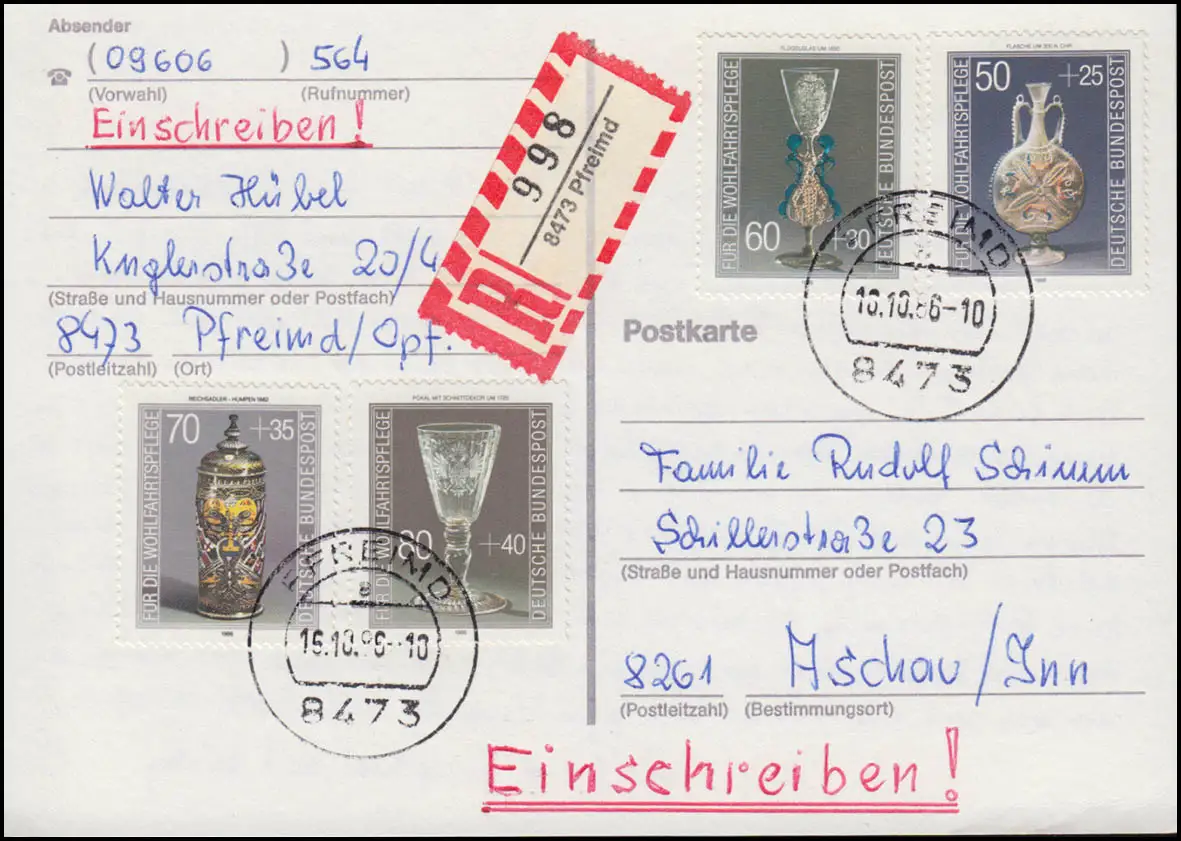 1295-1298 Verres précieux comme ensemble MiF sur carte postale R-FDC PREIMD ET-O 16.10.86