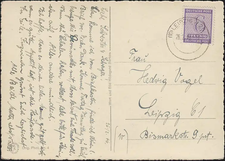 129Xw paragraphe 6 p. Wz. 1X raide EF AK avant la rosée et jour LEIPZIG 26.2.46