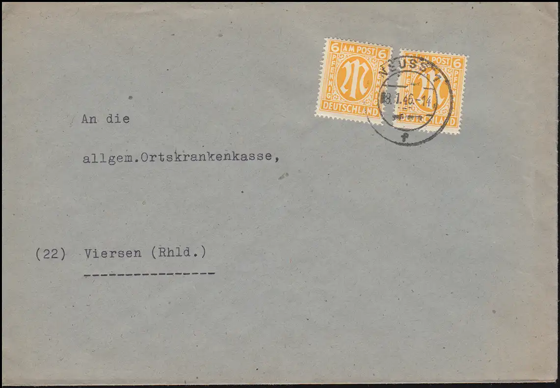 13 AM-Post 6 Pf. en tant que MeF sur lettre NOUVEAUSS 8.1.46 à l'AOK à Viersen