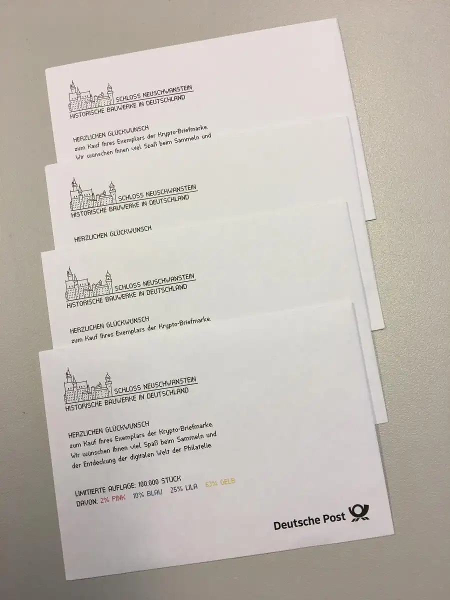 Ensemble complet des quatre couleurs jaune - violet - bleu - rose dans les enveloppes d'origine fermées du bureau d 'expédition. N° de catalogue: 130a-d Examen: original Référence produit: 500200113099101