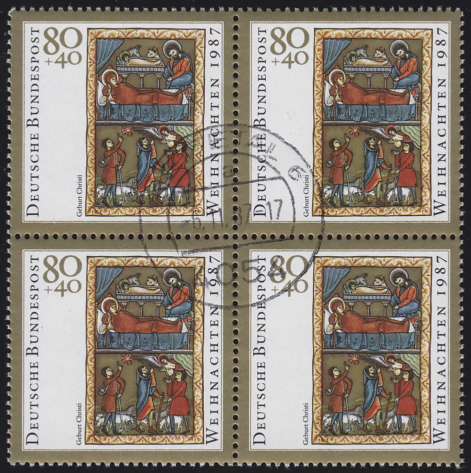 1346 Noël 1987 - Quadruple avec le cachet du premier jour NETTETAL 6.1.87