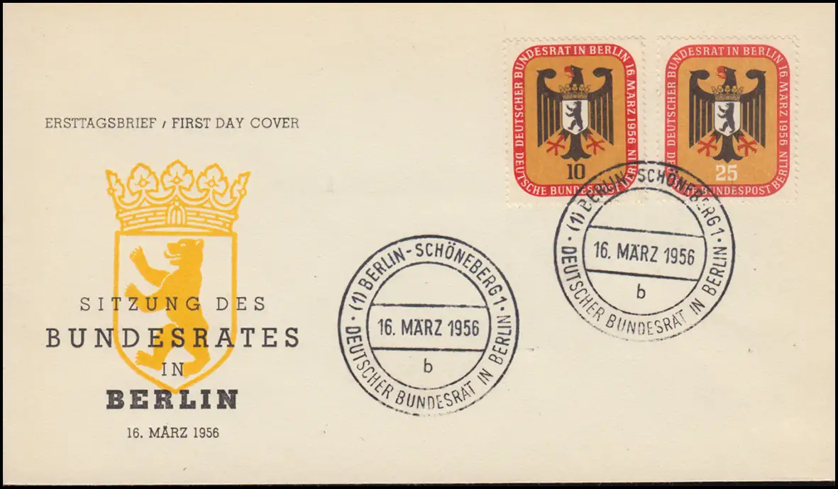 136-137 Conseil fédéral à Berlin 1956 sur le FDC Bijoux Blanco-Werft Berlin 16.3.1956