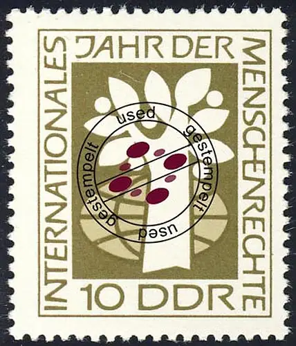 1369 Année des droits de l'homme Arbre+Balle Terre 10 Pf O Tamponné