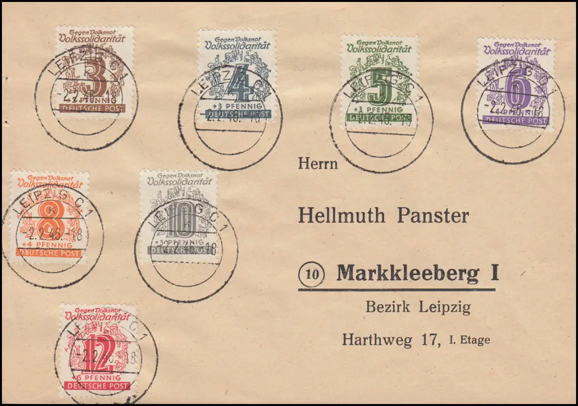 138-144 Solidaritarisme populaire 7 valeurs sur lettre LEIPZIG C1 2.22.46 vers Markkleeberg