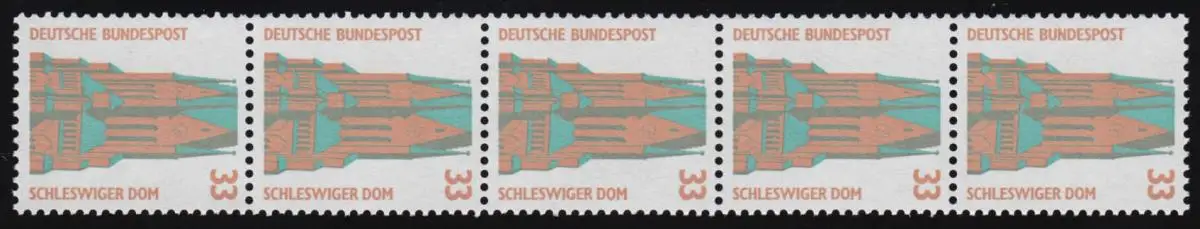 1399u SWK jaune Gum. 33 Pf 2000er-Rolle, 5 bandes + n° **