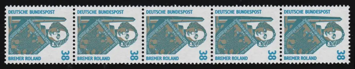1400 SWK jaune gum. 38 Pf 2000er-Rolle, 5 bandes + n° **