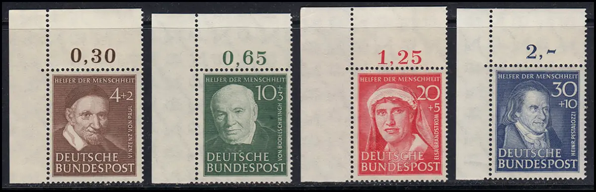143-146 Wohlfahrt 1951 Ecken oben links ungefaltet, postfrisch ** gepr. BPP