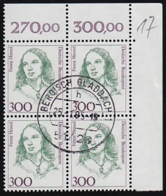 1433 300 Pf Hensel ER-Quatre bloc en haut à droite, marqué, jour-O centrique
