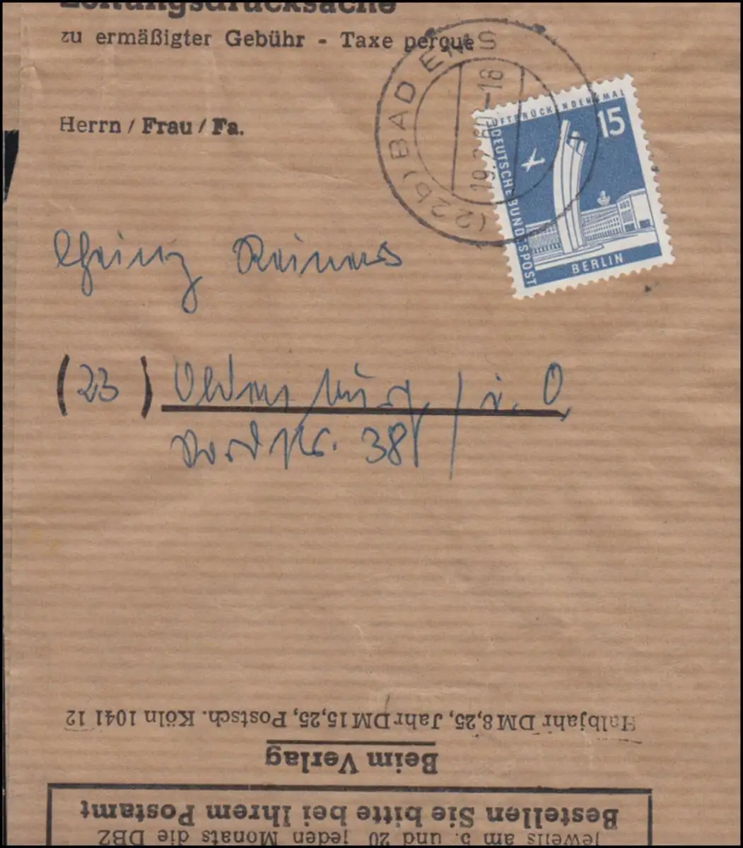 145 Berliner Stadtbilder EF sur Zeitungsschichtsbericht/ Streifband BAD EMS 19.2.60