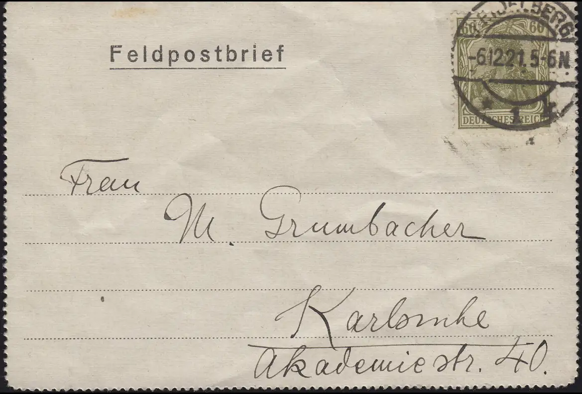 147 Germania 60 Pf. EF sur la lettre de Fern HEIDELBERG 1 k - 6.12.1921 vers Karlsruhe