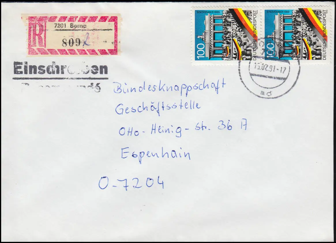1481I Marque arc Ouverture limite 100 Pf MeF R-Lettre BORNA 15.2.1991 après Espenhain