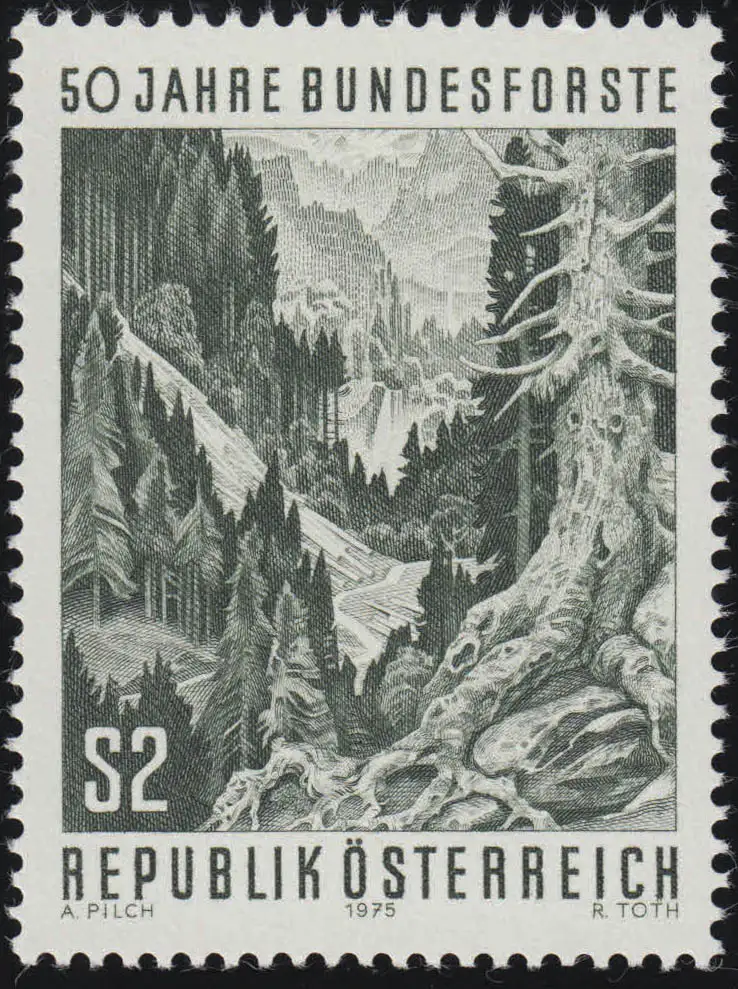 1486 50 ans Forêt autrichienne fédérale, paysage forestier, 2 S, frais de port **