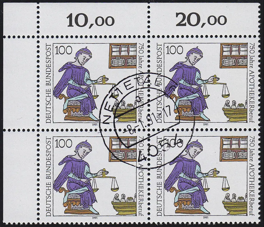 1490 Profession de pharmacien: ER-Vbl en haut à gauche plein-tampon centrique NETTETAL 8.1.91