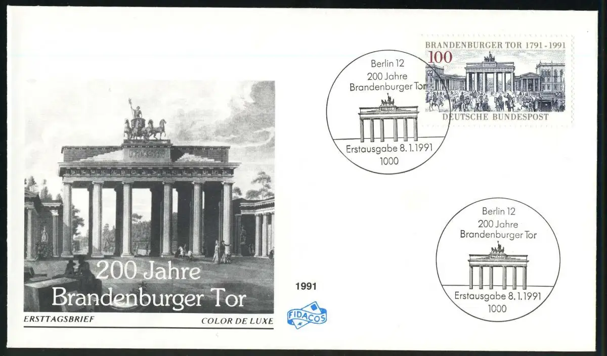 1492DD Brandenburger Tor - double impression des inscriptions grises sur le FDC de bijoux
