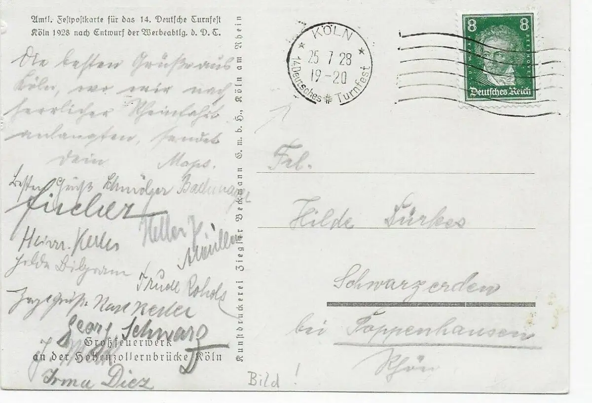 14ème Festival allemand de gymnastique de Cologne 1928 avec un cachet spécial après Poppenhausen