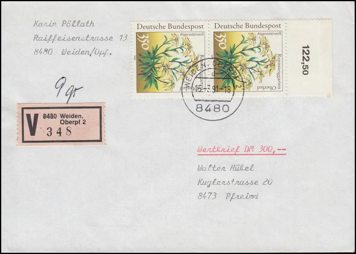 1509 Jardin de course 350 Pf. verticale OR-Paar MeF Lettre de valeur WEIDEN 15.3.91