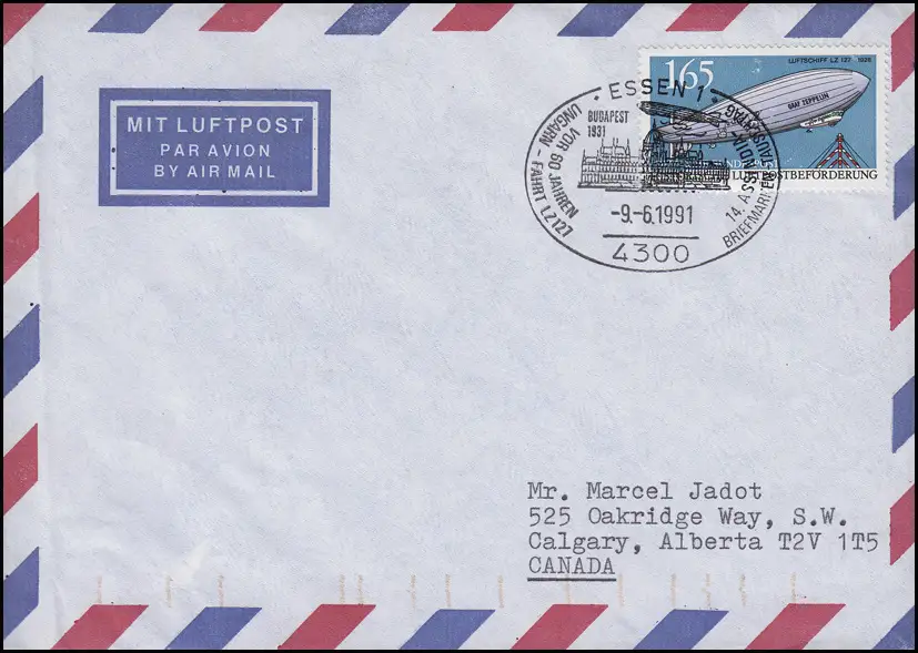1525 Zeppelin, EF Bf SSt Essen Hongrie-Voyage LZ 127 Hongrie 9.6.91 & Codage