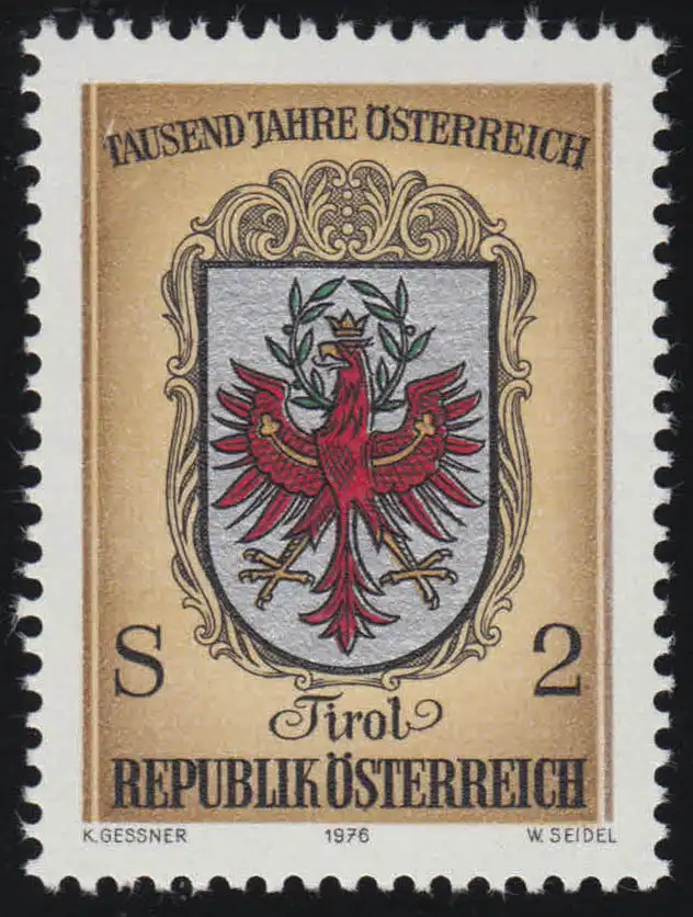 1526 de Block 1000 ans Autriche, armoiries Tyrol, 2 S post-fraîchissement **