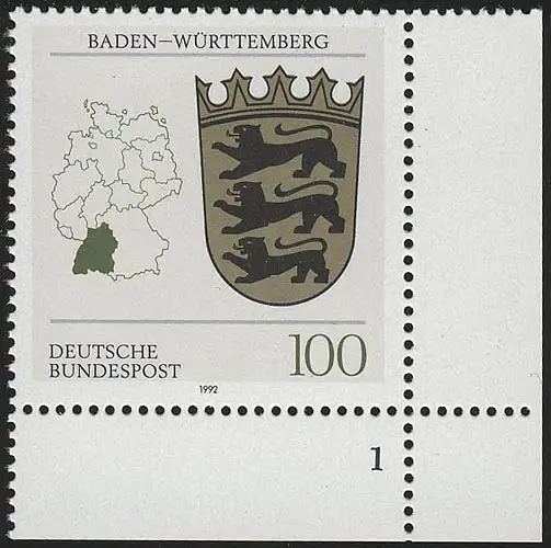 1586 Armoiries nationales Bade-Wurtemberg 100 Pf ** FN1