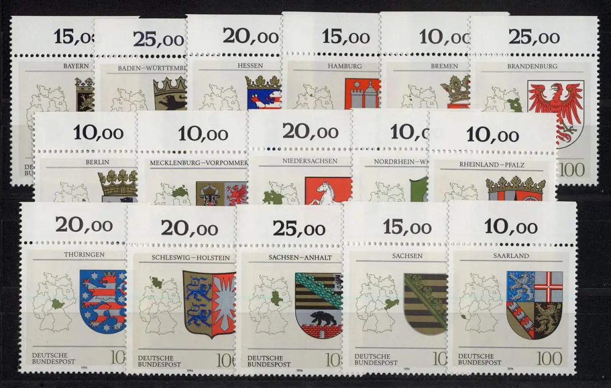 1586ff Armoiries nationales 1992-1994, 16 valeurs, marge supérieure, taux **