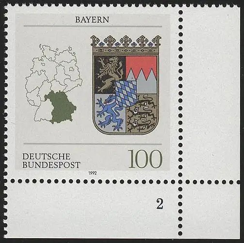 1587 Landerwappen Bayern 100 Pf ** FN2