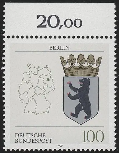 1588 Landerwappen Berlin 100 Pf ** Oberrand