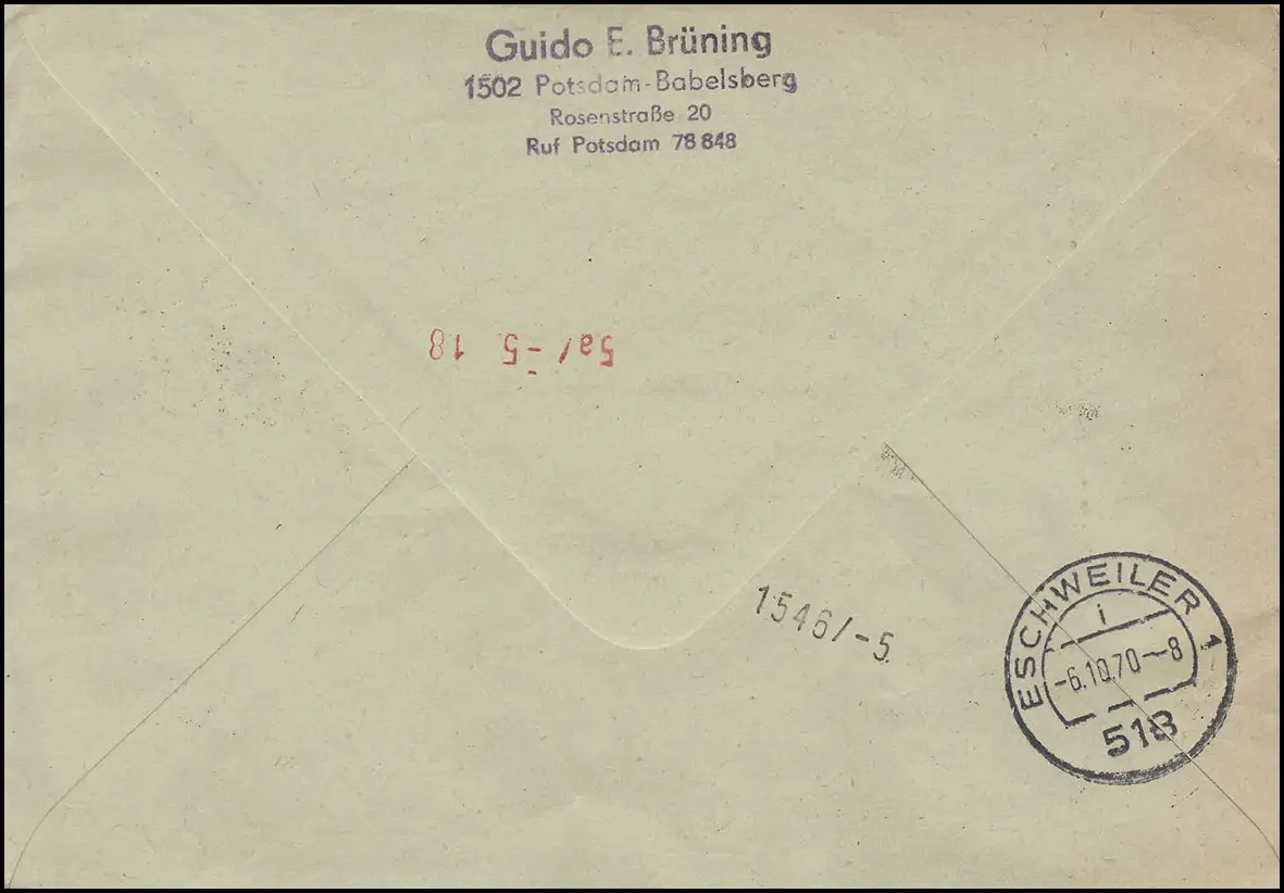 1598-1600 Potsdamer Accord en trois bandes lettre d'urgence SSt POTSDAM 1.10.1970
