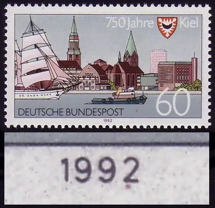 1598 Kiel avec PLF marron sous la 2 de 1992, case 8, **