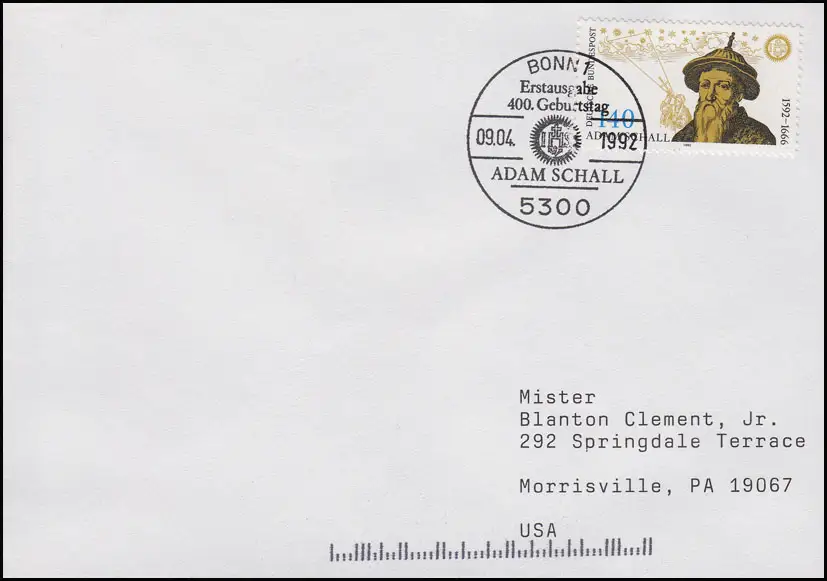1607 Adam Schall von Bell, EF FDC ESSst Bonn 400. Anniversaire 9.4.1992 aux États-Unis