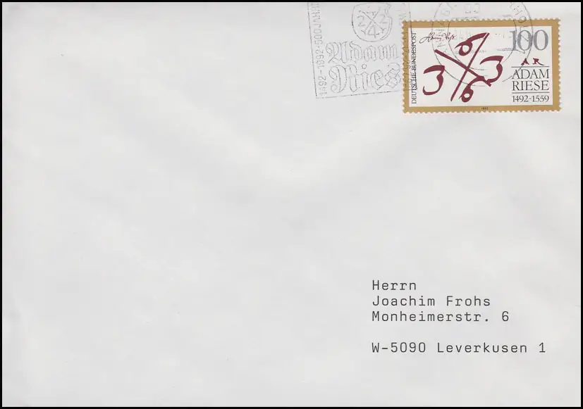 1612 Adam Riese, EF Lettre Annaberg-Buchholz Adam Ries Semaine Festive Juillet 1992