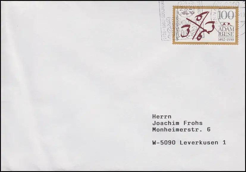 1612 Adam Riese sur lettre Annaberg-Buchholz Adam Ries Semaine Festive Juillet 1992
