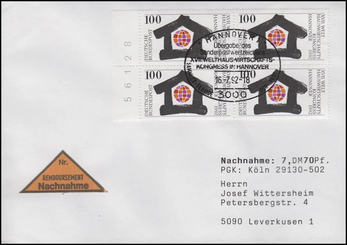 1620 Congrès mondial de l'économie domestique Vbl. avec GT MeF NN-FDC ESSt Hannover 16.7.92