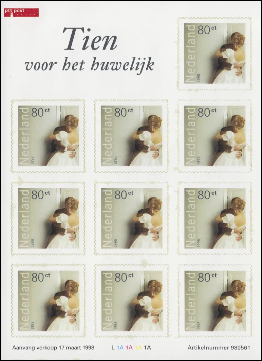 1652I Marque libre pour les vœux de mariage 1998 - feuille I, frais de port **