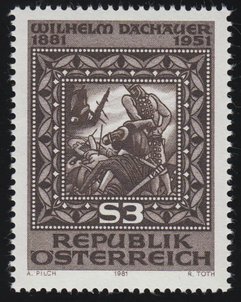 1666 100e anniversaire, Wilhelm Dachauer, projet de timbre W. Dauschau, 3 p. **