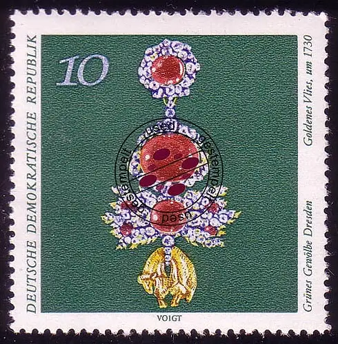 1683 Couche verte Tissu d'or 10 Pf O Tamponné